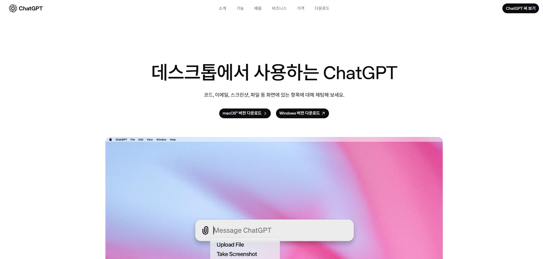 OpenAI 공식 사이트에서 제공하는 데스크톱 앱은 Windows 10 이상에서 사용 가능합니다. 다운로드부터 설치까지 3분이면 완료되며, 웹브라우저 없이도 바로 ChatGPT를 사용할 수 있습니다.